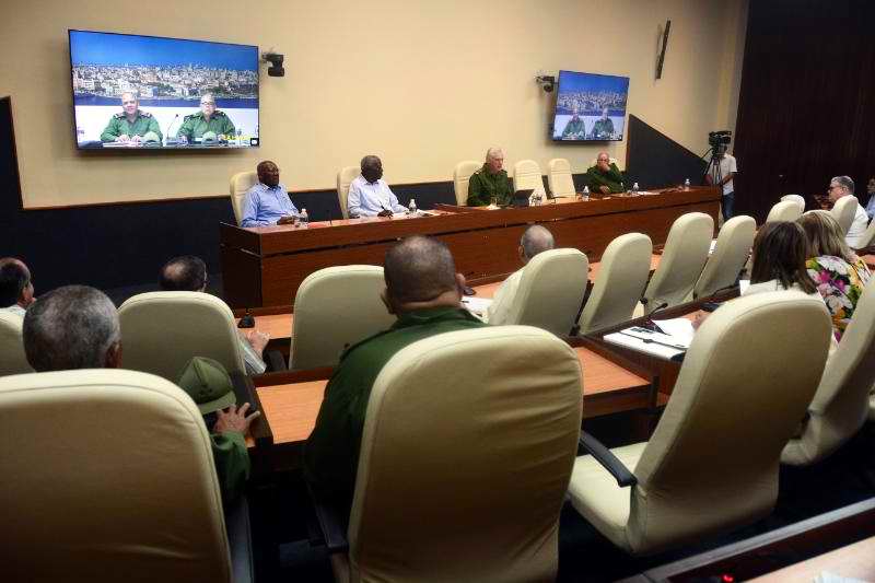 Desde el Palacio de la Revolución y en presencia también de Esteban Lazo Hernández, Presidente de la Asamblea Nacional del Poder Popular, el Vicepresidente de la República, Salvador Valdés Mesa, así como el General de Cuerpo de Ejército, Álvaro López Miera, Ministro de las Fuerzas Armadas Revolucionarias, todos miembros del Buró Político, se conoció que en La Habana permanecen protegidos 142 personas en 6 centros habilitados, se ha restablecido el 99, 90 % del servicio eléctrico y todos los sistemas de bombeo inhabilitados por el evento climatológico se encuentran funcionando, informó Luis Antonio Torres Iríbar, Presidente del Consejo de Defensa Provincial de la capital, quien también añadió que sin servicio permanecen 1039 clientes de la telefonía fija.